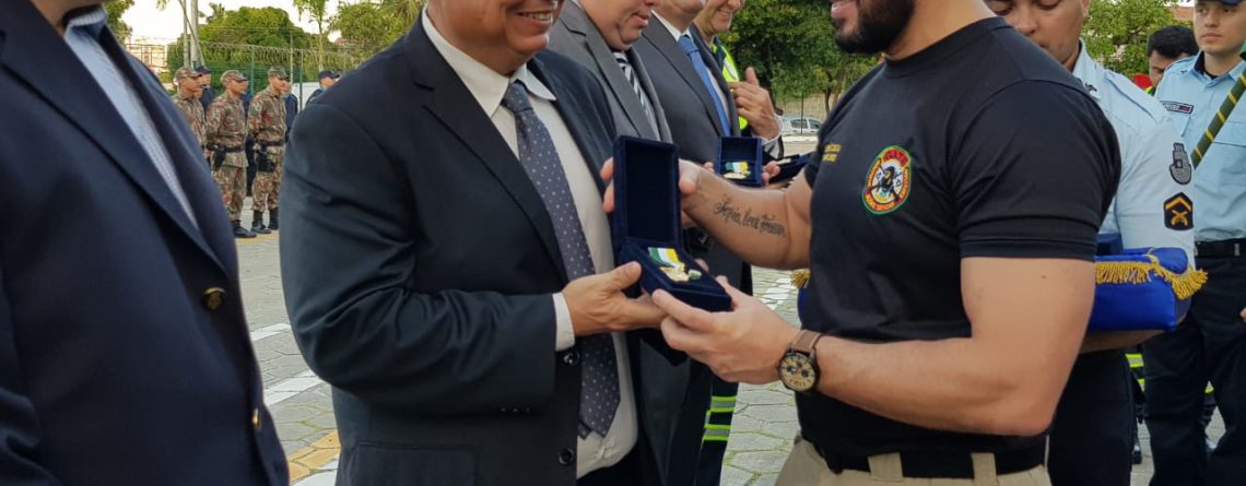 EM SOLENIDADE NO DIA 24 DE MAIO DE 2019, NO COMANDO GERAL DA POLICIA MILITAR DO ESTADO DO CEARÁ O DIRETOR COMERCIAL FRANCISCO ROBERTO, RECEBE A MEDALHA JOSÉ MARTINIANO DE ALENCAR.